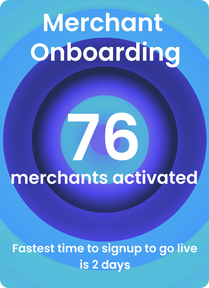 We activated 76 merchants this year, with the fastest onboarding going live in just 2 business days from signup. We will never achieve this milestone without the help of our payment partners and our own onboarding team.