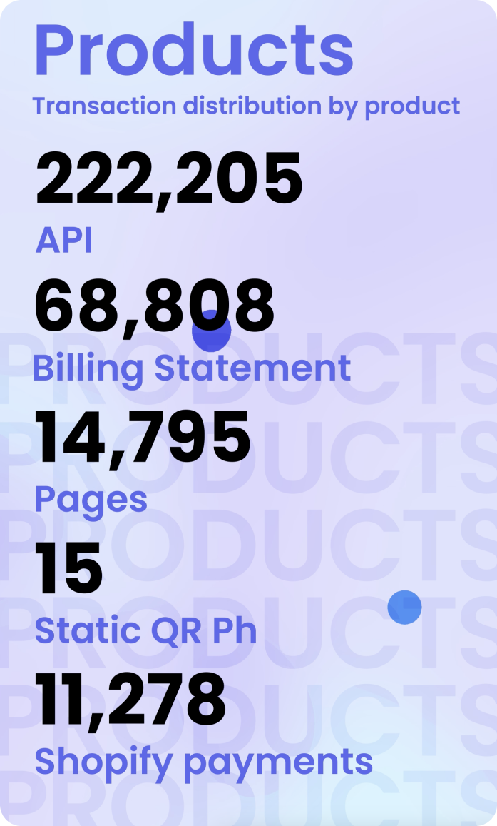Most payments flowed through our APIs, reflecting how developers and platforms continue to build directly on PayRex. Billing Statements, our Shopify plugin, and Pages supported no-code payments, allowing merchants to get paid without writing code, while Static QR Ph extended PayRex into in-person experiences.